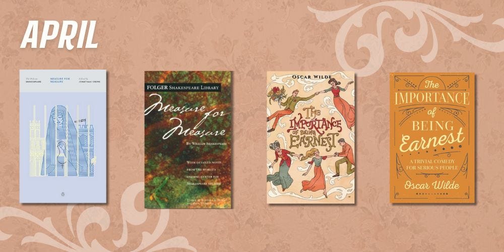 Measure for Measure by William Shakespeare & The Importance of Being Earnest by Oscar Wilde - This April is theatre month at NPU, and because reading a play is quicker than tackling a novel, we get to fit in two—very different—dramas. First, we’ll be covering one of Shakespeare’s problem plays, Measure for Measure, with our favorite Shakespeare nerd, Traci Thomas of The Stacks Podcast. Traci describes this as Shakespeare’s messiest play and we can’t wait to dig into it with her. We’ll also be (finally!!) reading The Importance of Being Earnest, a truly laugh out loud comedy filled with word play, double entendres, and madcap escapades. This is a genuinely fun read that’s doing a lot of heavy lifting, and as one of Chelsey’s all-time favorites, we’re glad we can finally bing it to the podcast.